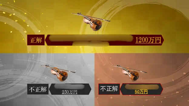 まずは「格付けバトル」の体験です。3つの選択肢が提示され、そのうち最も市場価格が高いものを選びます。最初は皆様「一流」ゲストですが、間違えると「二流」「三流」「そっくりさん」と、徐々にランクが下がってしまいます……!