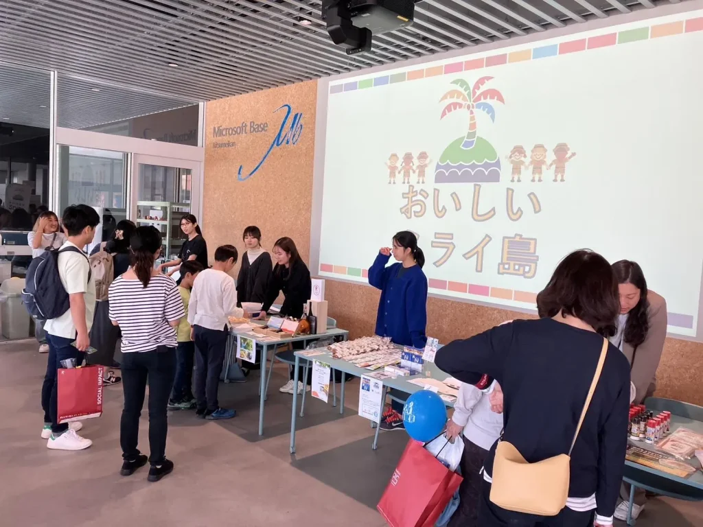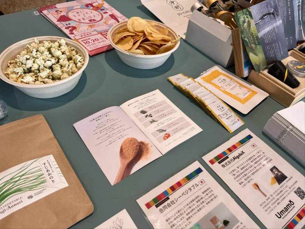 通常、SDGsアドベンチャーはパッケージでご提供しておりますが、今回は通常のパッケージに加えて、校友の方が立ち上げたSustainable Food Asia株式会社とコラボしたブース「おいしいミライ島」もご用意しました。