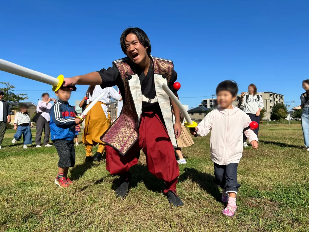 (梅村様)アンケートの満足度も非常に高かったですし、子供も大人も一緒にチャンバラができて、親子の交流ができた点がよかったです。芝生が広がる屋外空間をうまく活用し、イベント全体のにぎやかな雰囲気づくりにも貢献していただけたと思います。