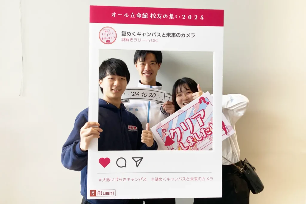 「OICにできた新しい施設を知っていただく機会にしたい」「若い世代の校友の方が校友の集いに来場するきっかけを作りたい」そのご要望にお応えして制作したのが、オリジナル周遊型謎解きです。今回はなんと、立命館大学校友のクリエイターが謎解き制作を担当しました!