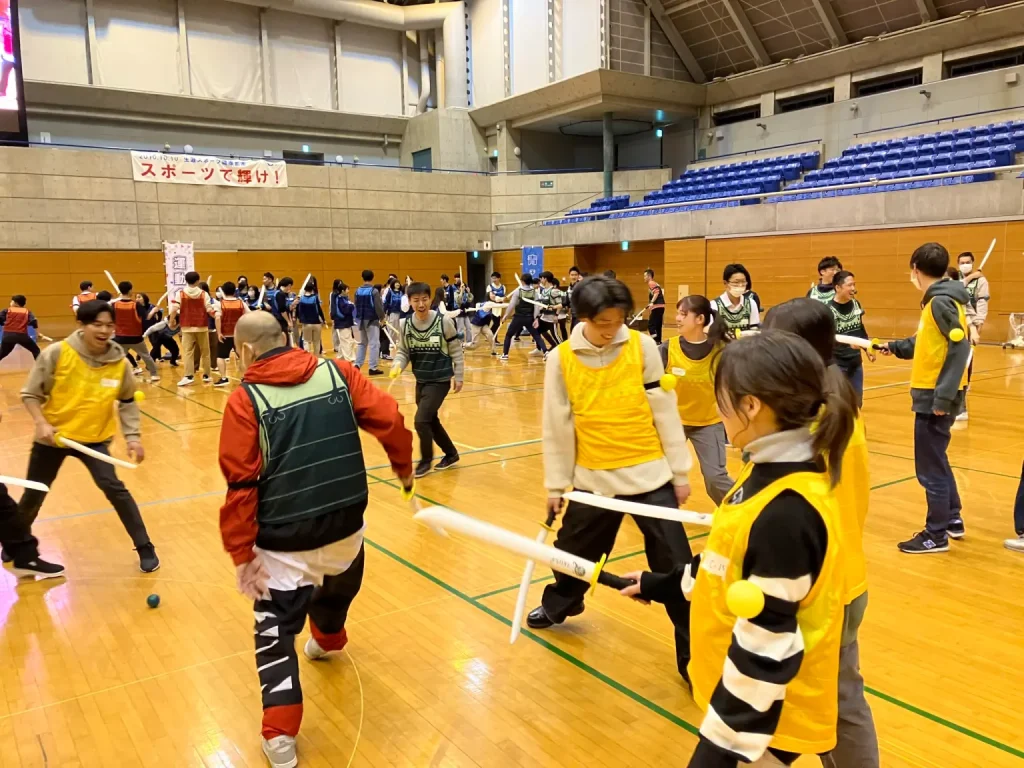 チャンバラ合戦とは、スポンジでできたオリジナルの刀を利き腕に持ち、反対の腕に装着した「命」と呼ばれるボールを落とし合うアクティビティです。今回行った合戦は以下の2種類!