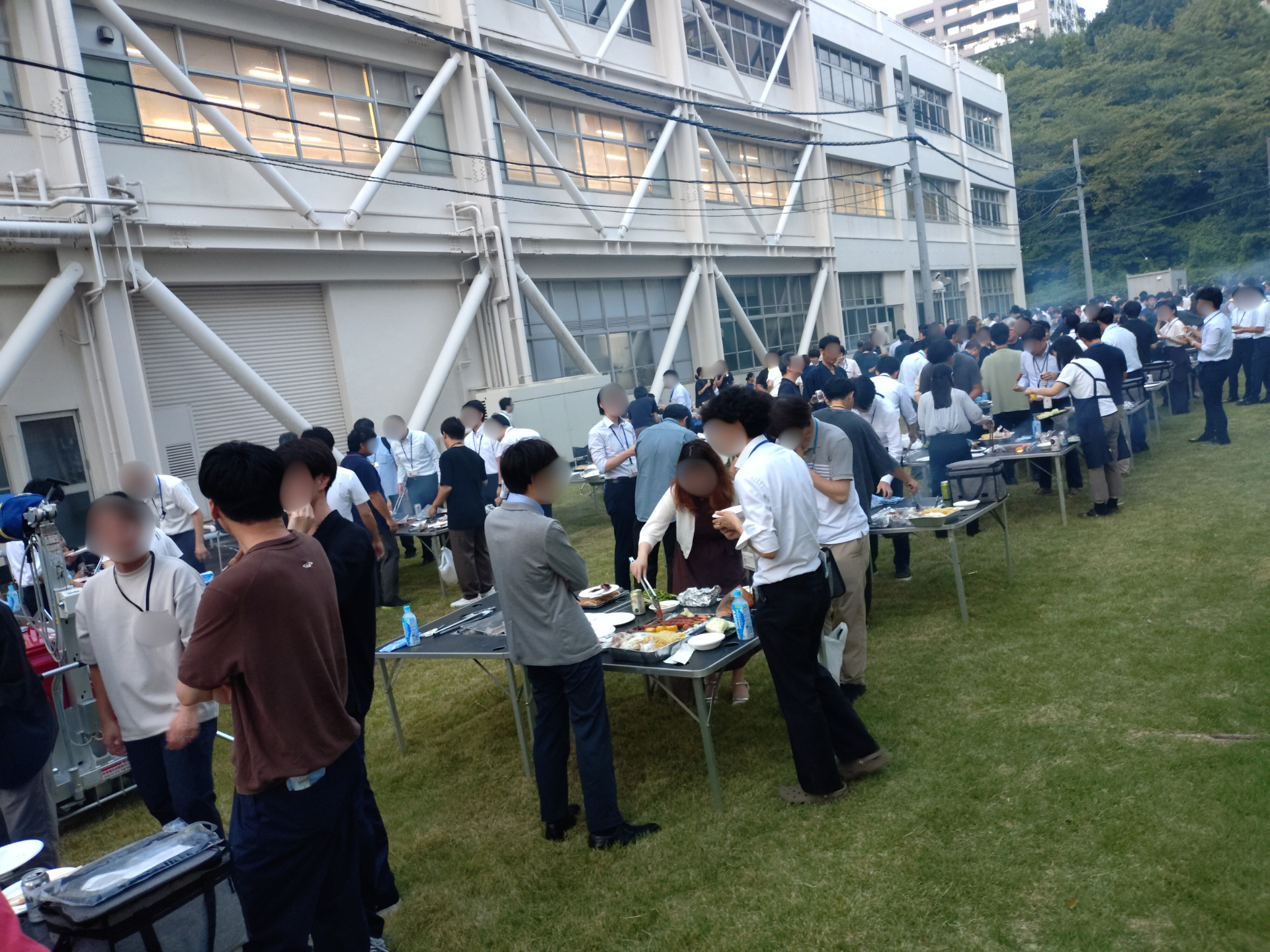 BBQは、屋根付きの屋外会場にコンロを設置して調理したものを、室内の食堂に持ち込んで食べる形式に変更。悪天候のため、当初とは異なるオペレーションとなりましたが、大きなトラブルもなく、無事にイベントを終えることができました。