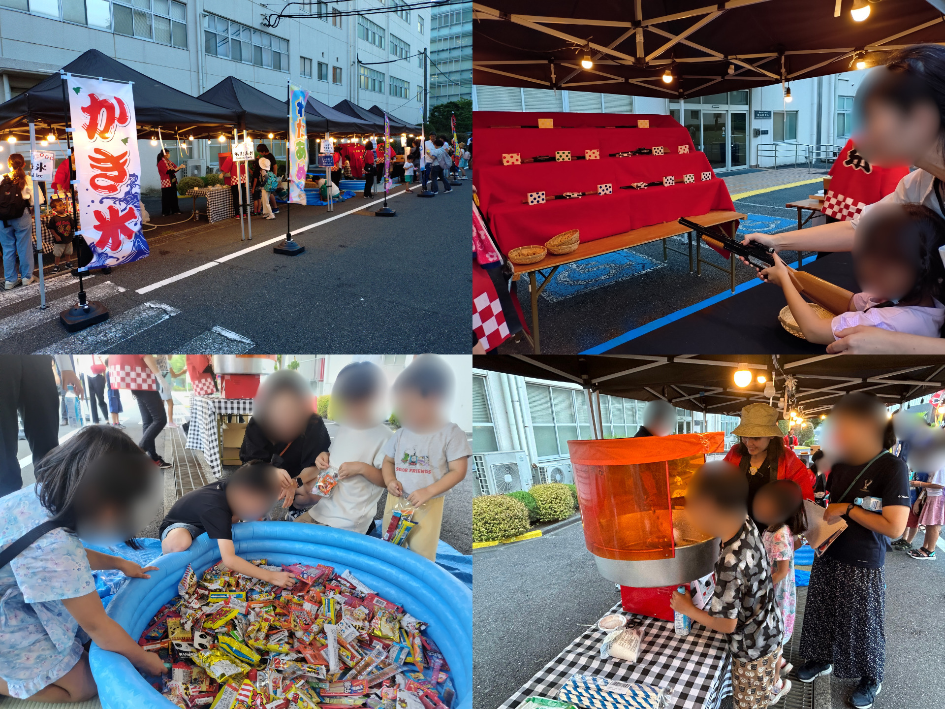 縁日屋台には、かき氷・お菓子(人形)すくい・射的・綿菓子など、お馴染みの屋台が集合。大人から子どもまで、夢中になって楽しまれていました。
