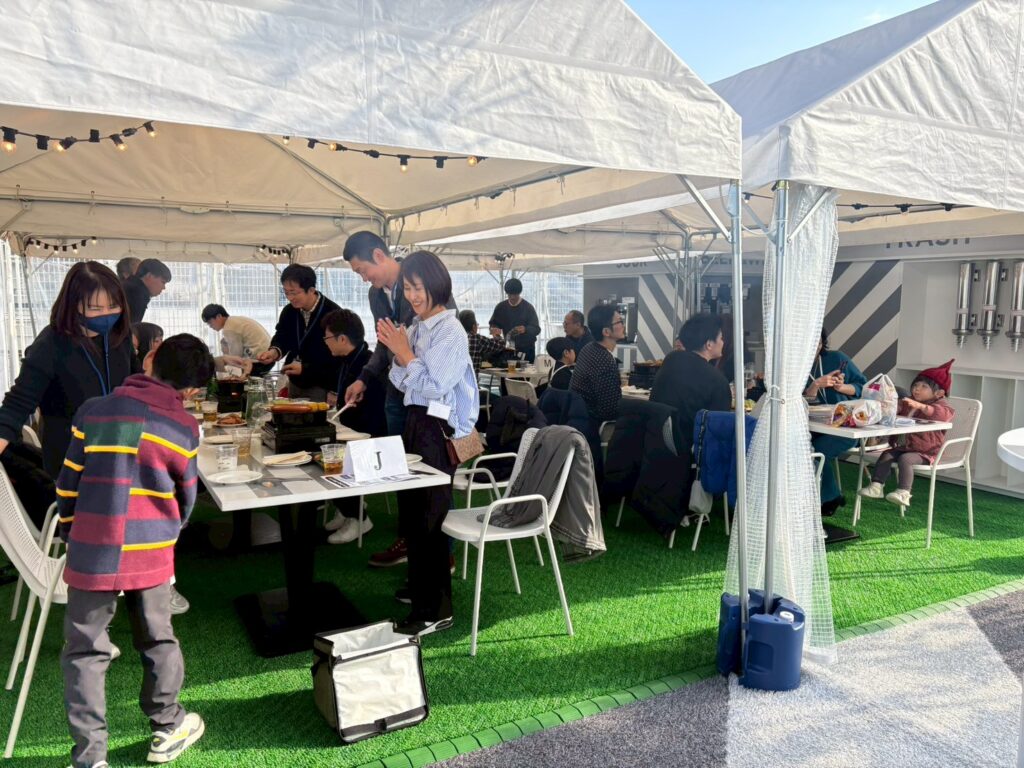 イベントは、京都タワー屋上という開放感のある会場で、BBQとオール社員感謝祭を同時進行で実施しました。屋外ならではの空気感も相まって、リラックスした雰囲気の中で会話も弾む交流が進みます。