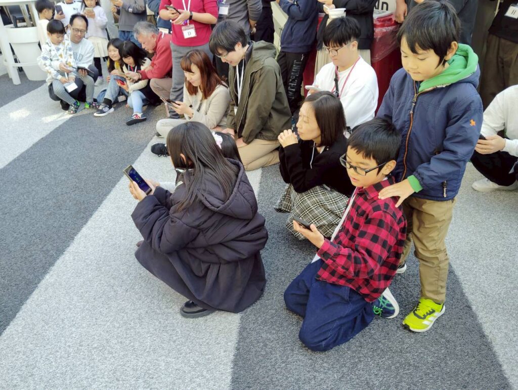 家族で1つのスマートフォンを囲み、相談しながら回答する姿も多く見られ、世代を超えた一体感が生まれていました。