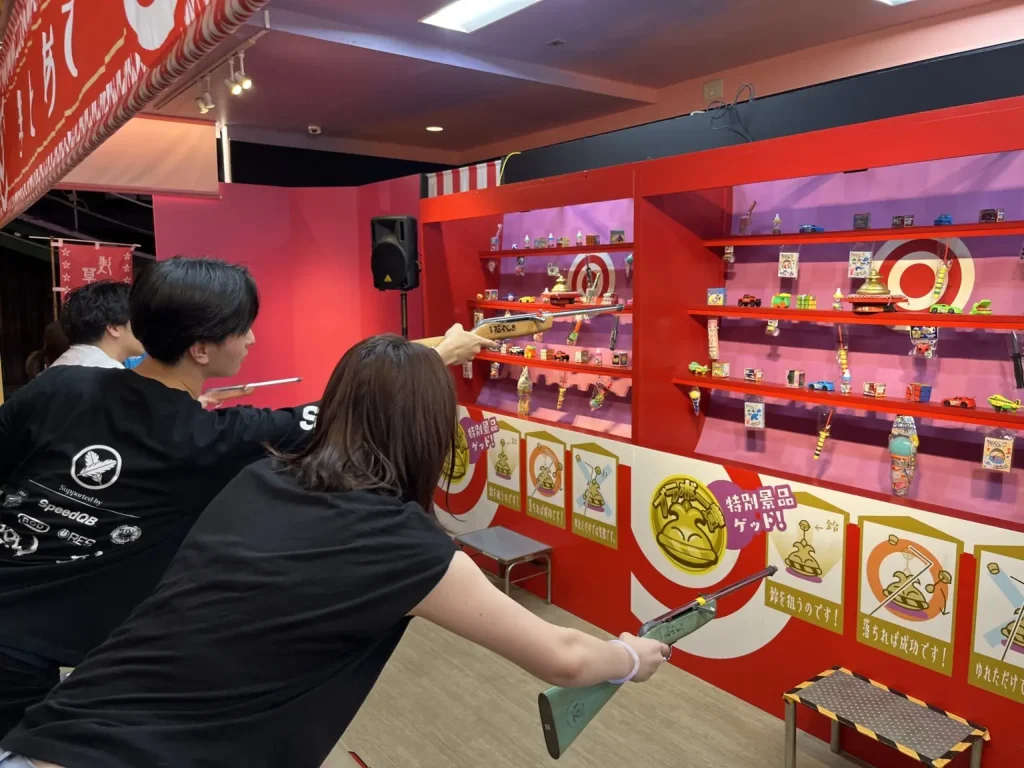夏祭りということで、かき氷・焼きそば・焼き鳥などの屋台に、輪投げや射的なども楽しめます‼ 本格的……‼