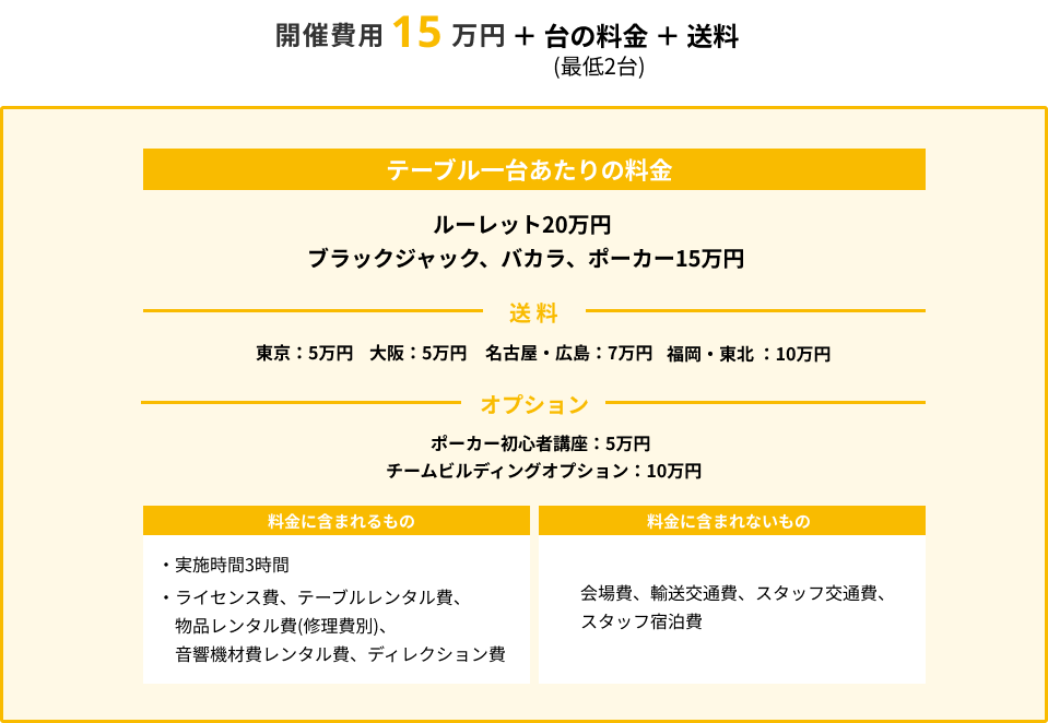 イベントを盛り上げる豊富なオプションをご用意しています。
