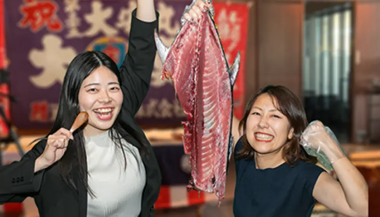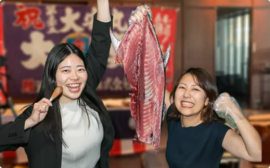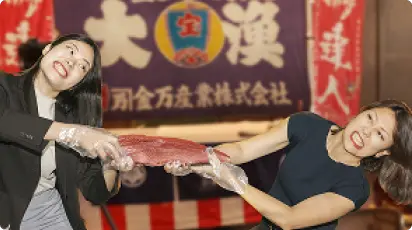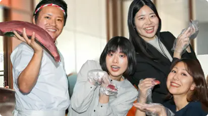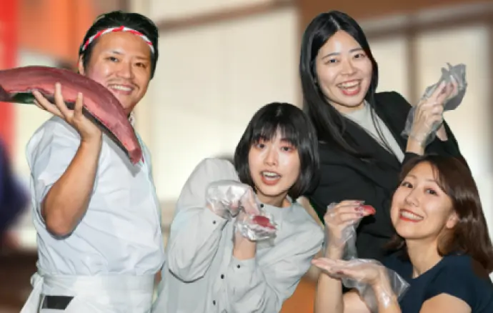 マグロ解体ショーだけでなく、チームビルディングになるゲーム企画もセットになったプランです。カジュアルに交流要素を取り入れたい懇親会におすすめです。