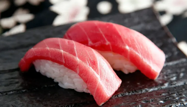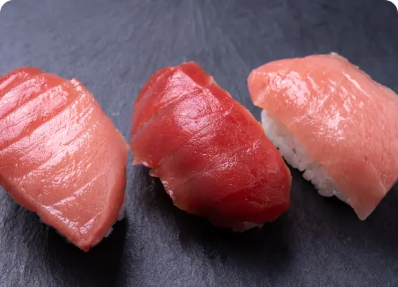 本マグロ、メバチマグロ、キハダマグロの3種類のお寿司を食べ比べ。