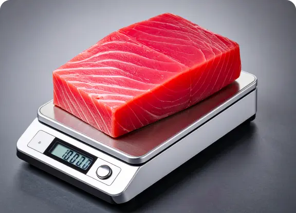 マグロのボリューム感と、何グラムかみんなで予想しあう楽しさのある企画です。