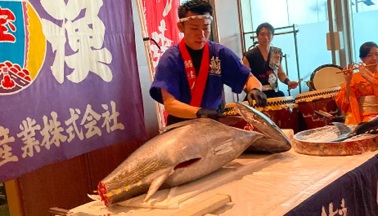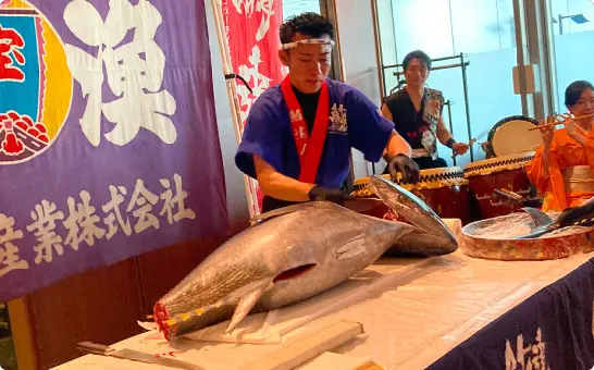 マグロを目の前でさばく迫力満点のパフォーマンス+盛り上がる企画